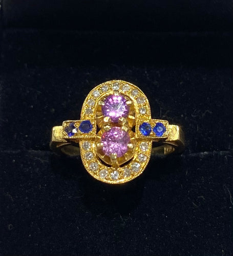 Juvelsring i Art Decostil, rosa safirer och diamanter
