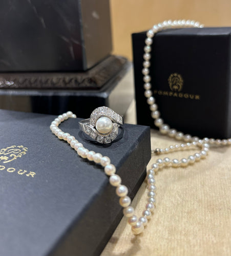 Juvelsring i 18k vitguld, pärla och diamanter 0,84ct