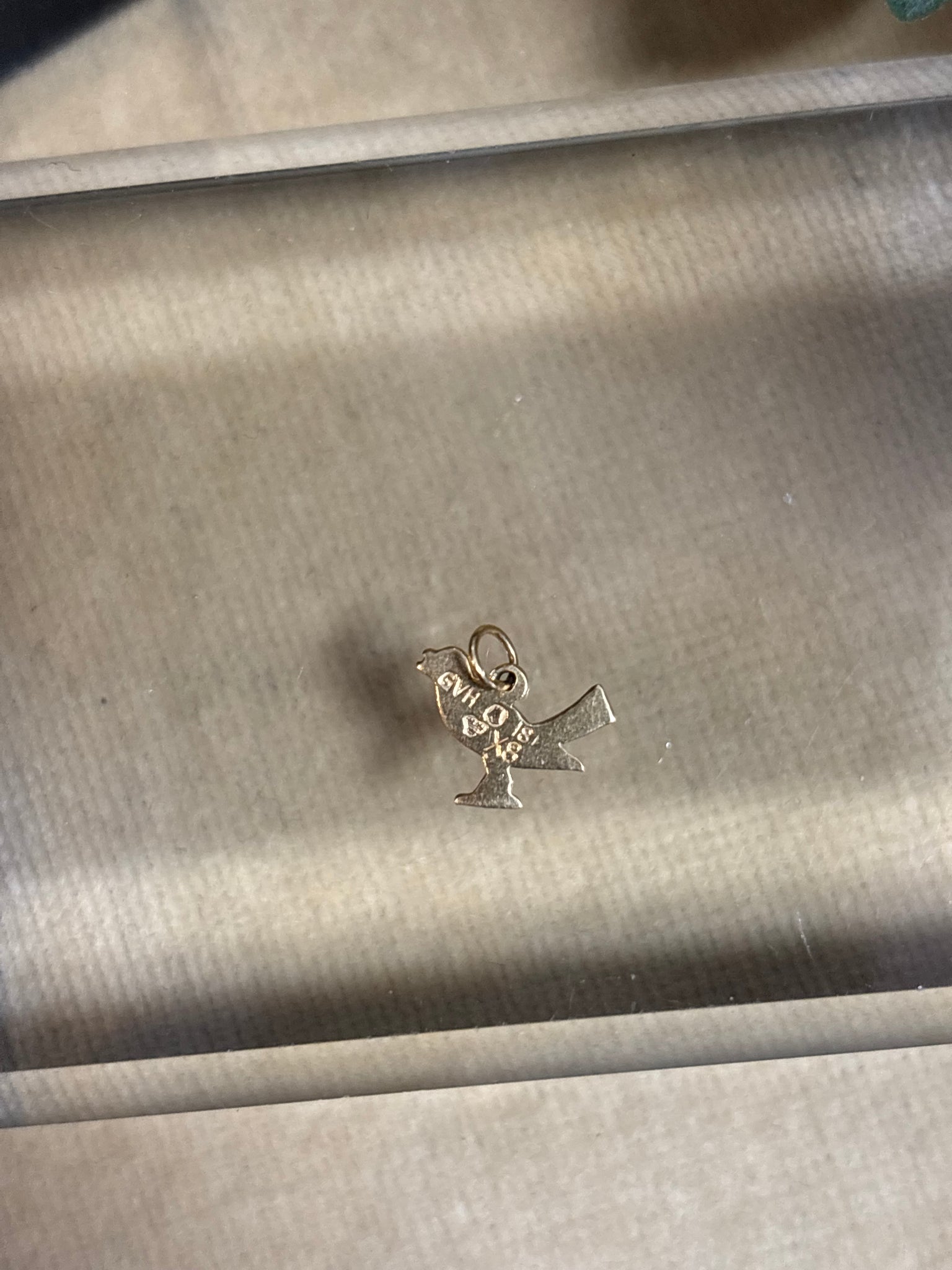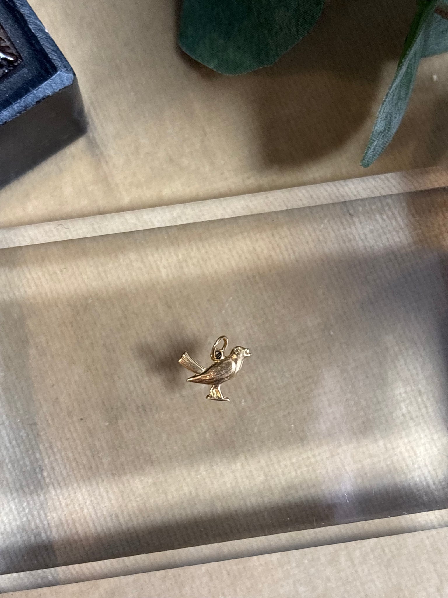 Berlock, 18k guld, i form av fågel tillverkad av Guldvaruhuset, Stockholm 1948