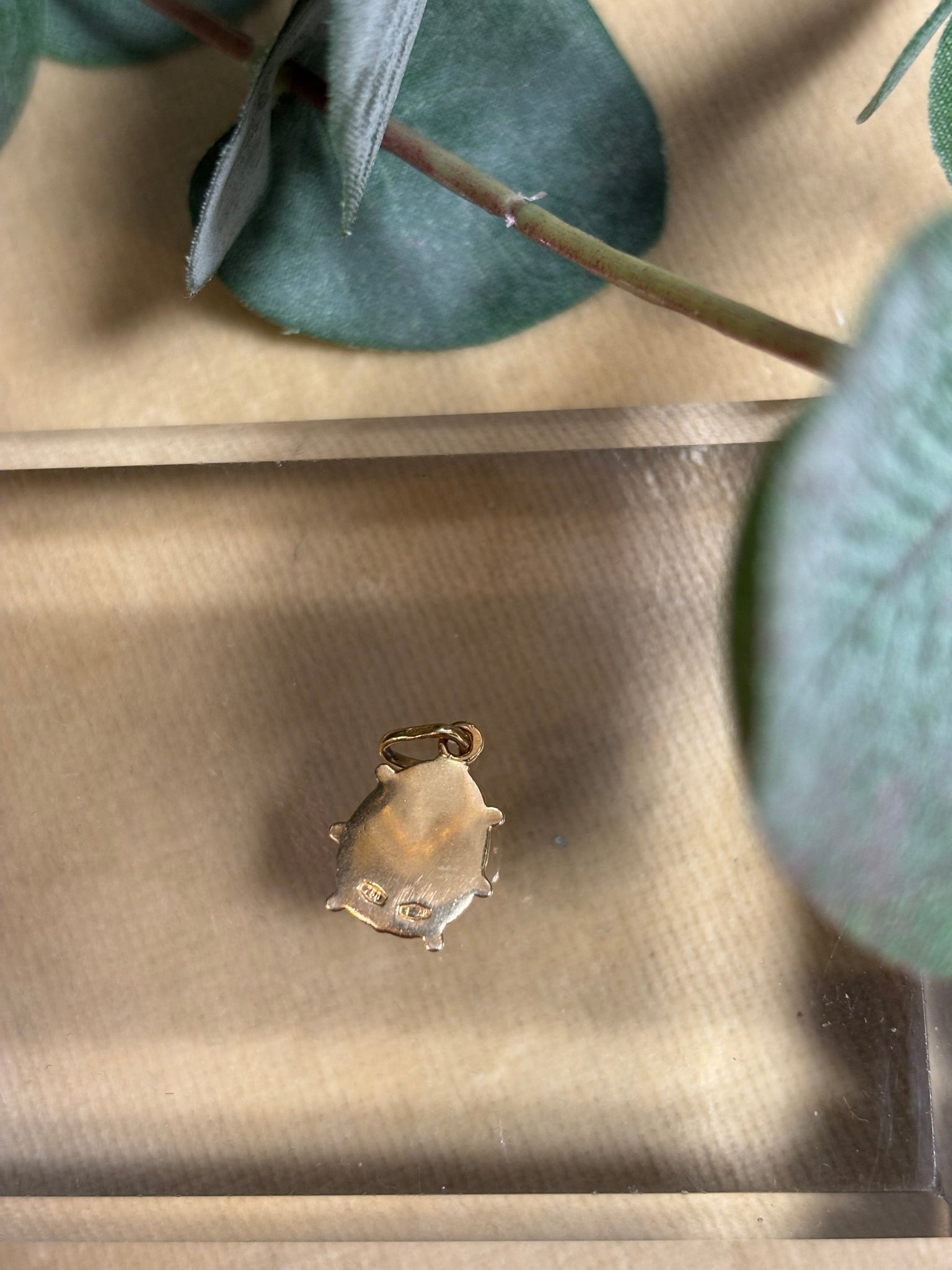 Berlock i form av nyckelpiga, 18k guld med emaljinläggningar.