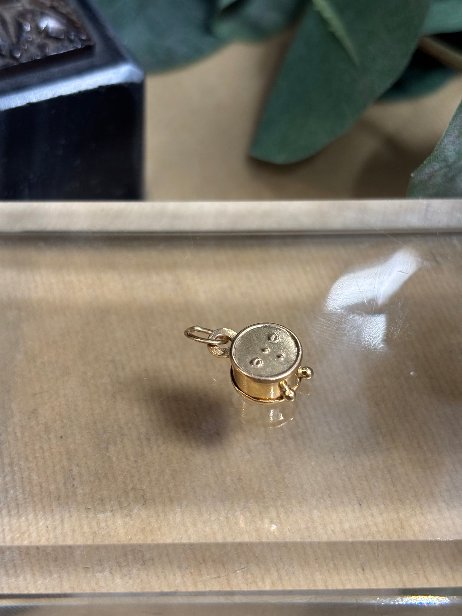 Berlock, 18k guld, i form av ett klassiskt väckarur.
