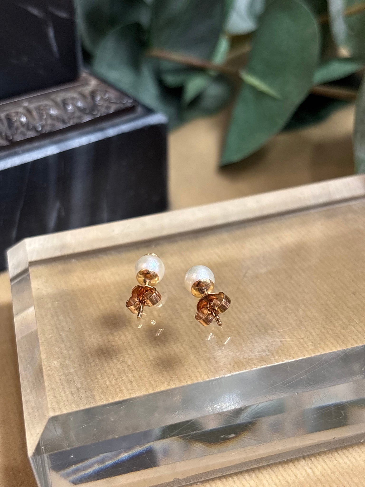 Örhängen 18k guld med odlade pärlor, 6mm. Med gulddetaljer på pärlan.