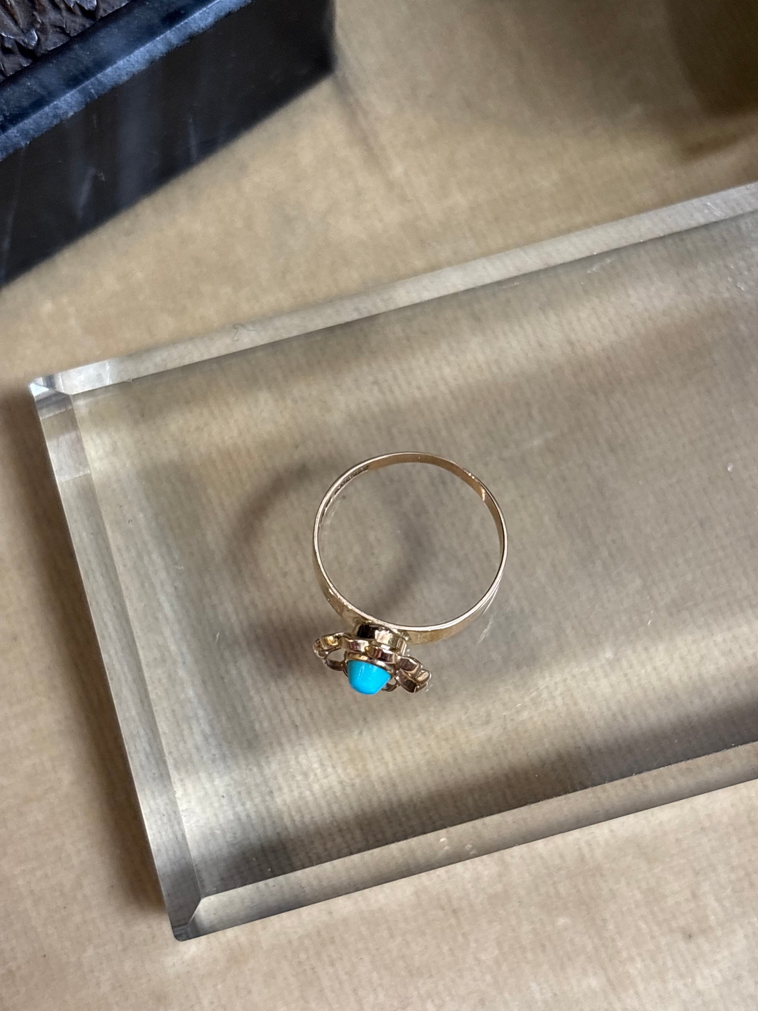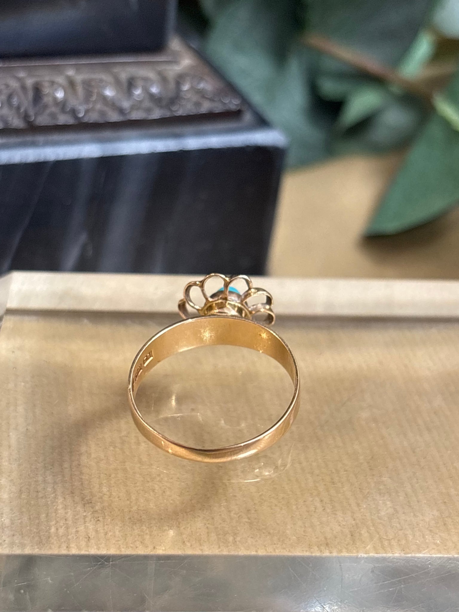 Ring i 18k guld med en turkos. Tillverkad 1969 av Alton, Falköping